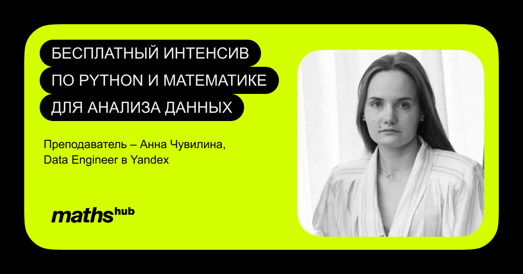 Это подтверждение твоей регистрации на бесплатный интенсив по программированию на Python и математике для анализа данных от Mathshub. Спасибо за заявку!