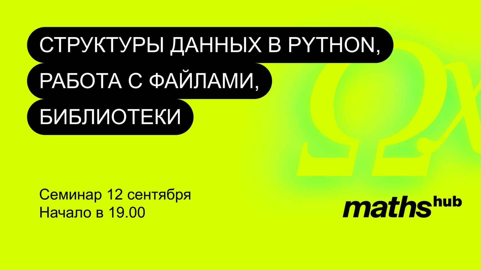 Ждем всех на семинаре «Структуры данных в Python, работа с файлами, библиотеки» сегодня в 19:00 (мск)