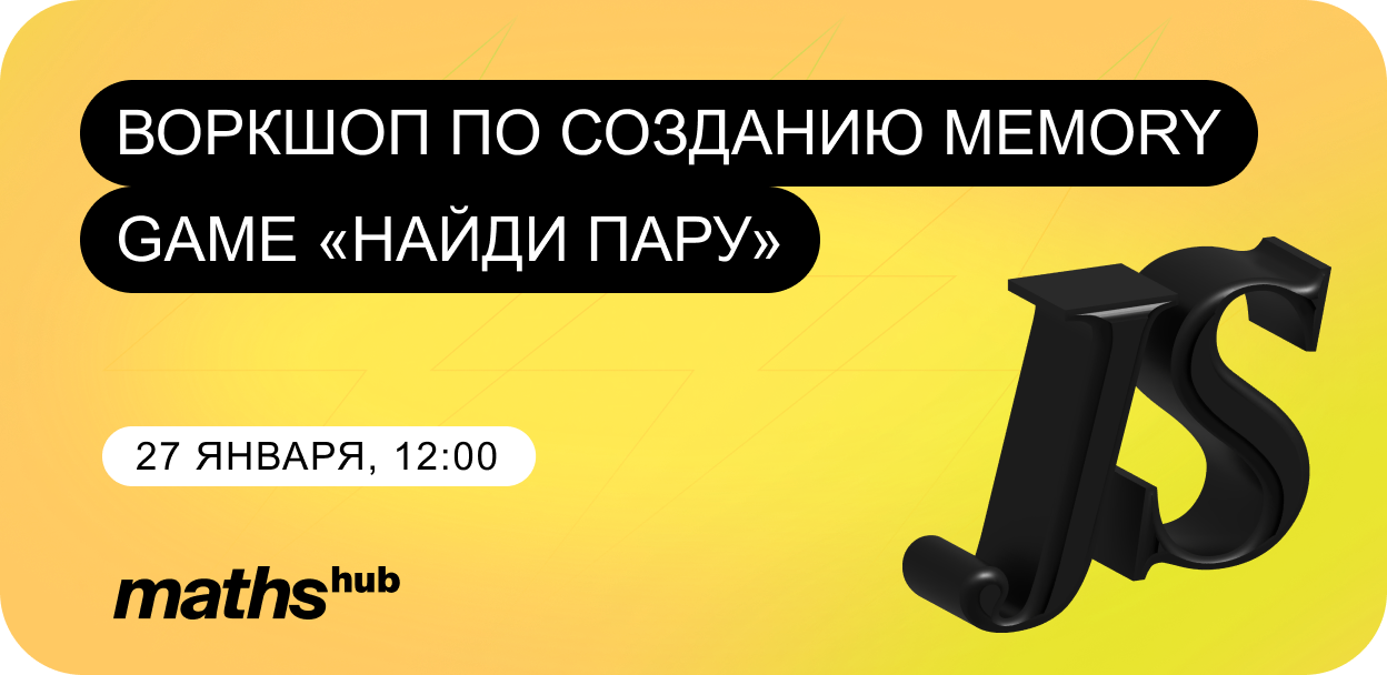 субботу 27 января в 12:00 (мск) состоится воркшоп по созданию Memory Game «Найди Пару» на JavaScript.