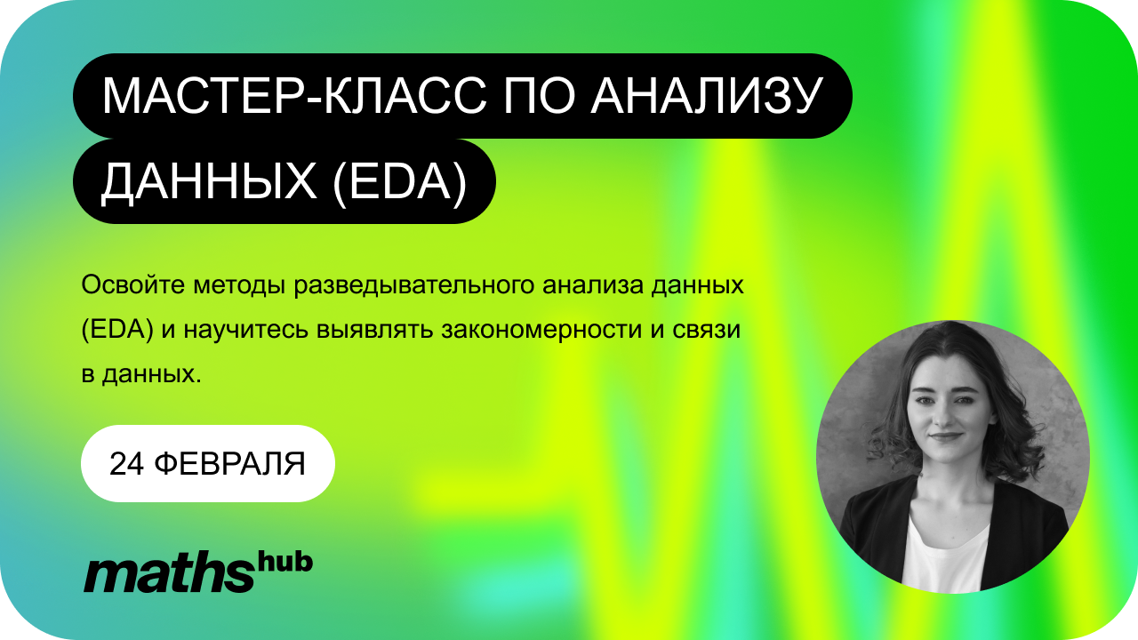 На мастер-классе 24 февраля вы изучите теорию по основам EDA и закрепите знания на практике. | | | | | | | | | Будете обрабатывать и готовить данные для анализа, строить графики, искать тренды и зависимости | | | | Попрактикуетесь в использовании Python и библиотек Pandas, Matplotlib и Seaborn | | | | Получите тетрадь Jupyter Notebook (интерактивный файл с Python кодом), в котором будет содержаться анализ и нужные графики. | | | | | | ангелина гербольт | | Преподаватель курсов по программированию, аналитике и науке о данных, Data Scientist под NDA. | | | | | Необходимые теоретические знания для выполнения проекта (основы статистики: нормальное распределение, корреляция и т.д.) | | | | Участие в живом занятии с возможностью задать интересующие вопросы ментору, а также практика по выполнению проекта | | | | Проверку готовой работы, обратную связь от ментора с советами по улучшению работы | | | Бонусную лекцию от основательницы школы Mathshub — Айры Монгуш: «Генеративные AI: что это такое, возможности и перспективы. Обзор ChatGPT». | | | | | Какие знания необходимы для участия? | | | | | | Основы Python (работа с числами, строками, лямбда-функции), библиотека Pandas (сортировка, группировка, фильтрация), основы библиотеки визуализации Matplotlib/Seaborn, основы статистики: среднее, стандартное отклонение, нормальное распределение и корреляция (в течение занятия эти термины будут объяснены, но собственные знания будут плюсом). | | | | | | → Регистрируйтесь по ссылке, чтобы стать участником интересной практики и сделать новый шаг в карьере аналитика данных. | | | | | | | |