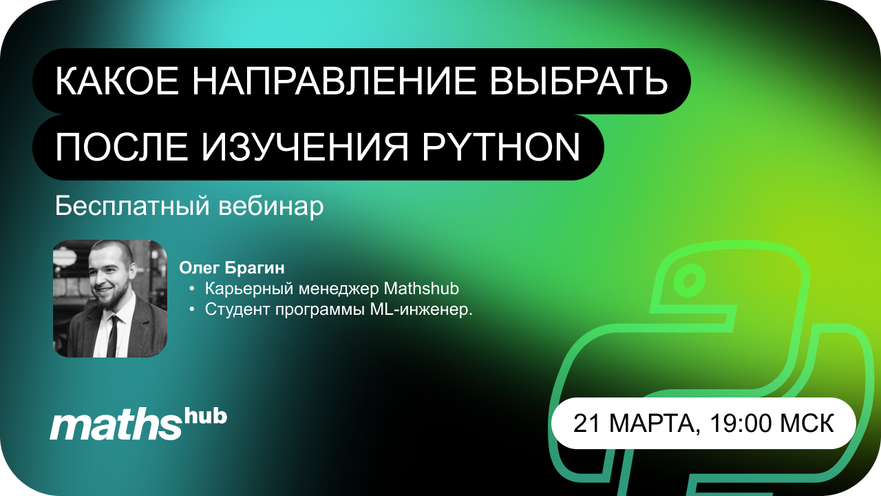 Через 15 минут начинаем вебинар «Какое направление выбрать после изучения Python». Поговорим о том, где применить полученные навыки и как развиться в профессиональной сфере.