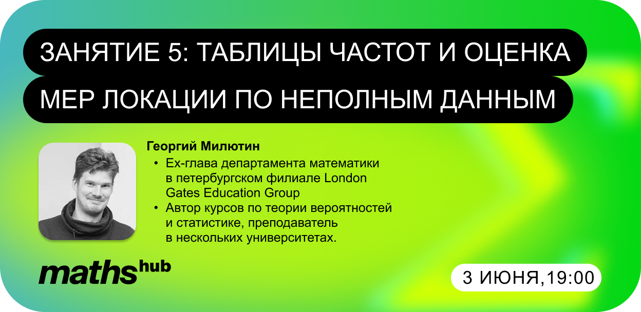 1️⃣Мы опубликовали материалы по 5-му занятию по теме «Таблицы частот и оценка мер локации по неполным данным» от 3 июня с Георгием Милютиным.
