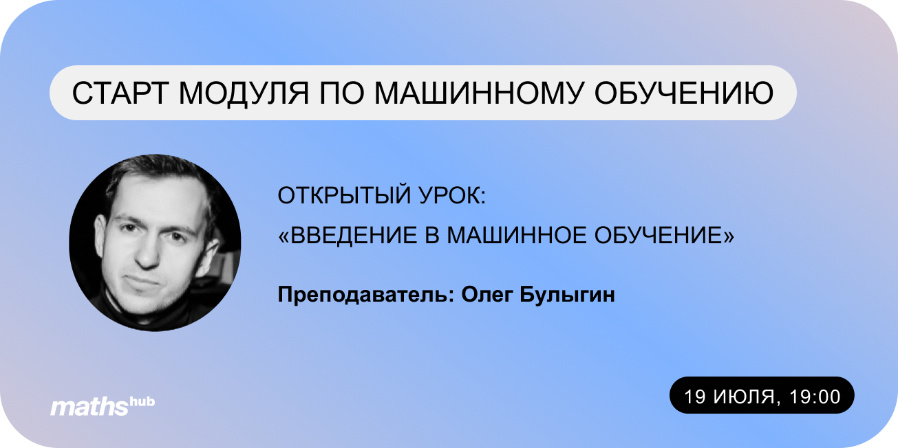 | | | | | ЖДЁМ ВАС НА ОТКРЫТОМ УРОКЕ | Урок будет отличной подготовкой перед стартом курса по машинному обучению 23 июля. На курсе вы изучите: - Задачи регрессии, классификации и кластеризации;