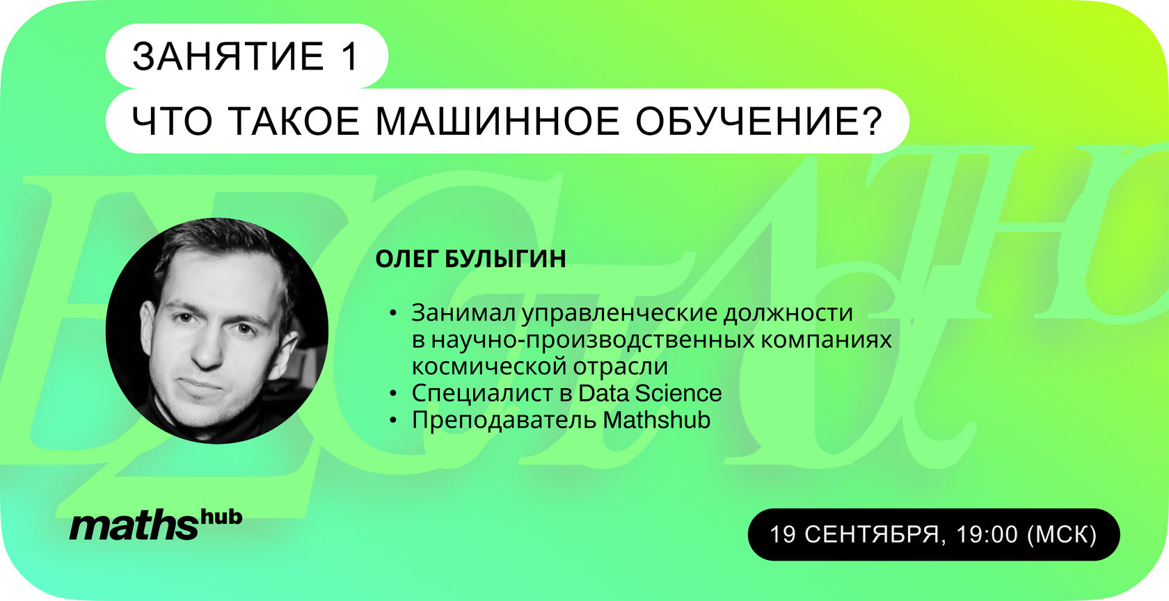 - Первое занятие на тему: «Что такое машинное обучение?».