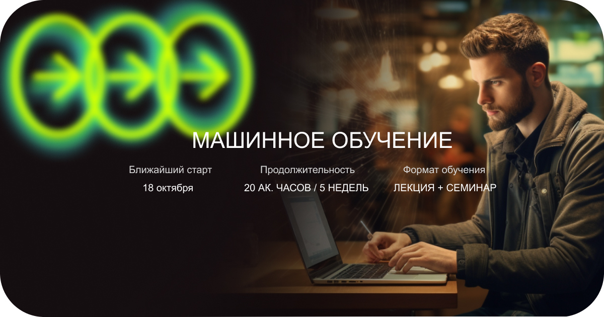 | | | | | Оставляйте заявку на курс Machine Learning уже сейчас, за пять недель вы освоите полезные приёмы при работе с данными, разберёте классические задачи и алгоритмы, изучите всю базовую информацию о машинном обучении и создадите ML-пайплайн с нуля. | | | |